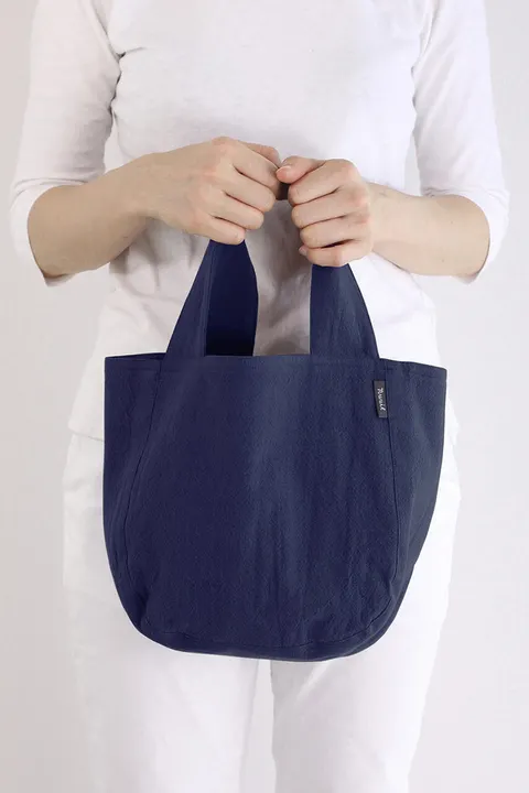 オリジナル生地「ウォッシュドコットン」で作ったバッグ。 丸いフォルムと幅広の持ち手がカジュアルで可愛らしい印象を与えます。 使い勝手の良いサイズ感で。