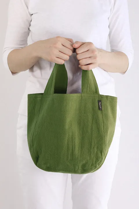 ウォッシュドコットン ラウンドバッグ S 4 グリーン