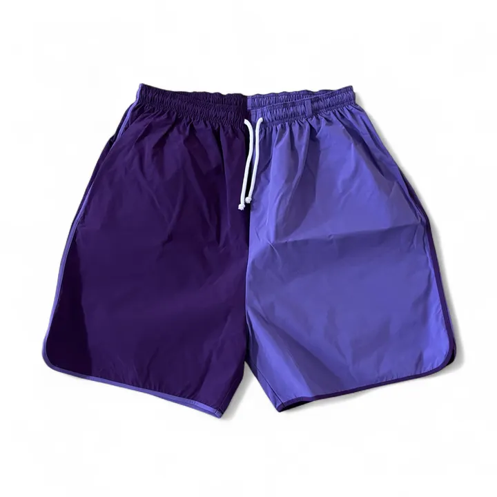 シンプル過ぎず、やり過ぎずな、おじさんでも気軽に履ける同系色のグラデーションカラーでご好評いただいてます HALF&PANTSをベースにした、ショートパンツの新色です。 HALF&PANTSのルーズシルエットはそのままに、レングスをざっくり膝丈でカット。 さりげなく同色のパイピングを施し、サイドはスポーティにRスリットが入ります。 酔っぱらってて、左右の色間違えちゃいました…、っていうテイは変わらずのショートパンツです。 ウエスト:80~130 / 股上:44 / 股下:15 ワタリ:46 / 股上(後):51 / 裾幅:22cm 腰紐、左前ベルトループ、左右サイドポケット、左右バックポケット