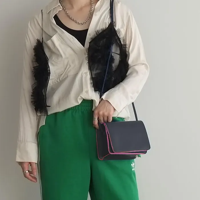 コバカラーがポイントのシンプルミニショルダーバッグ。 フラットな表面の生地(リサイクル生地)でしっかりと形状を維持するように仕上げました。 ショルダーにはコバカラーをネオンにしてポイントに☆ スマホ・ウォレット・カードケースなど必要なものが収納できる容量です。 華奢にしたショルダーは軽量感があり、内側で結んで長さの調整が可能です。 コーデに合わせてナナメ掛けや肩掛け可能です。 cheekアイコンの7カラーチャームもカラビナでカスタム可能! 【cheek 販売価格について】 弊社設定上代(税込価格)での販売をお願い致します。 また、商品に対してのクーポン等はご遠慮いただいております。 ショップ全体でのクーポン等は問題ございません。 ご理解・ご了承のほどお願い致します。