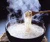 "「五島うどん」は、「稲庭うどん」「讃岐うどん」に並び日本三大うどんの一つと言われております。 「五島手延べうどん」は一般的なうどんに比べ、細麺で、コシがしっかりしていて喉ごしも良いのが特長です。 和・洋・中のどんな料理にも生かすことができ、春夏秋冬を問わず一年中、手軽に楽しんでいただける逸品です。 白磁のように艶〈つや〉があり、プルンと滑らかな食感と、麺自体の持つ豊かな風味と椿油が調和して、シンプルでありながらも、奥深い味わいを引き出しているのが、五島うどん最大の特長です。 生地を延ばしていく過程で、麺同士が付着しないように使用しているのが、五島列島特産の食用椿油です。椿油はオレイン酸を豊富に含有しており、麺の酸化を防ぐ効果があるともいわれています。 「五島手延うどん」伝統の技は、遥か遣唐使の時代、大陸から伝わったといわれています。遣唐使船の寄港地であった上五島は、麺伝来の地であり、日本の「麺ロード」の重要拠点だったと言われています。 五島うどんは、麺の自然乾燥に適した島の風や、美しい海から精製される自然塩、島に自生する椿の実から搾られる良質の椿油など、自然の恵みによって育まれてきた伝承の銘品です。 上五島の郷土料理『地獄炊き』たっぷりのお湯で茹で上げたあつあつのうどんを大鍋ごと食卓へ乗せます。薬味を加えた、飛魚(あご)だしにつけたり、醤油を入れて溶いた卵にからめてお召し上がりください。古くから行事食や家庭料理として親しまれてきた五島自慢のうどん料理です。"