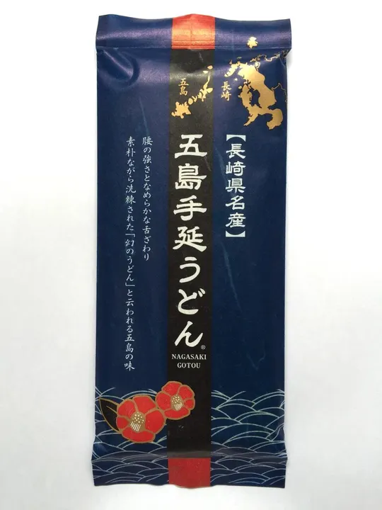 長崎県上五島市で作られる「五島手延べうどん」は幻のうどんと呼ばれ、滑らかな食感とな中に小麦の風味と椿油の味わいが特徴の手延べうどんです。