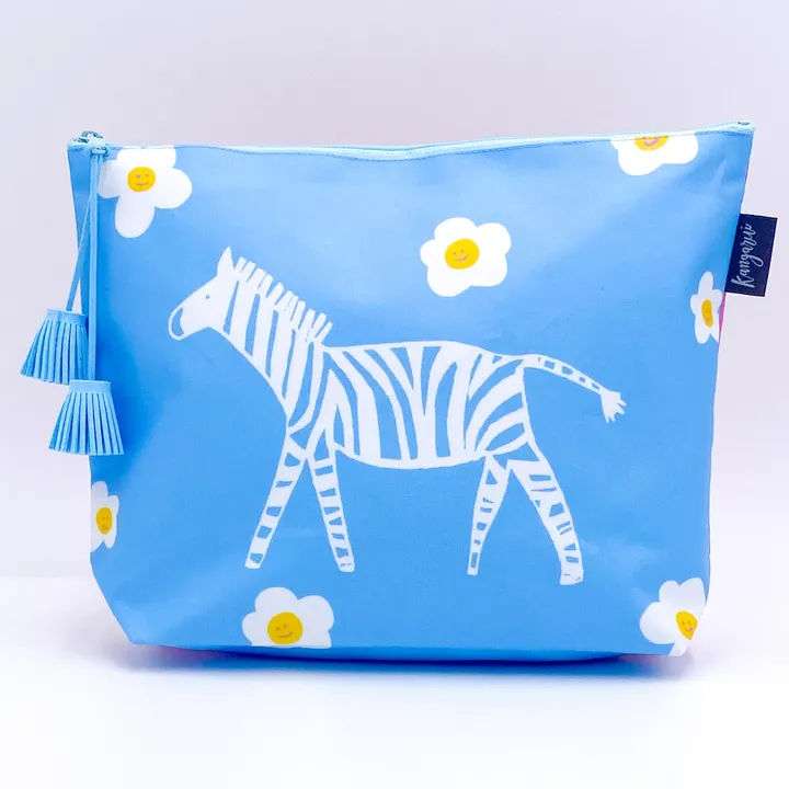 サファリポーチ(L)マチ付き Floral Zebra 水色 シマウマ(タッセルの色が変わることがあります)