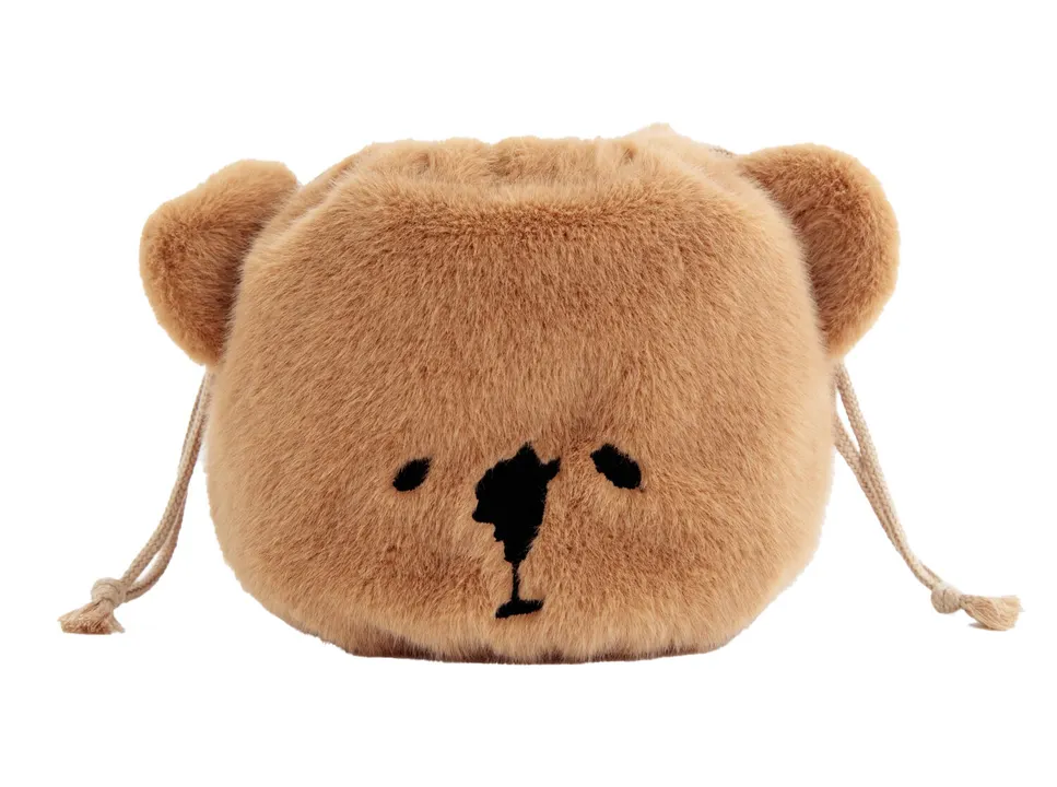 キャラクター部、はじめました! この度ビスクからオリジナルキャラクターが誕生しました。 心やさしい、うっかり屋さんのしろくま。 本当はしろくまなのに、うっかりしていたら上半身が醤油に浸かってしまい茶色くなってしまった醤油くま…。 醤油醸造所に修行に来たものの、うっかりミスを連発してしまう毎日。ついに先日、ぼーっとしていたら醤油樽に上半身が浸かってしまい、茶色く染まってしまいました。とほほ・・・。 ずっと触っていたいふわふわの生地で醤油くまのお顔巾着ポーチを作りました。 ”とほほ”な醤油くまの表情がなんともかわいらしく癒されます。 バッグの中で迷子になりがちな小物類を入れてすっきり収納。