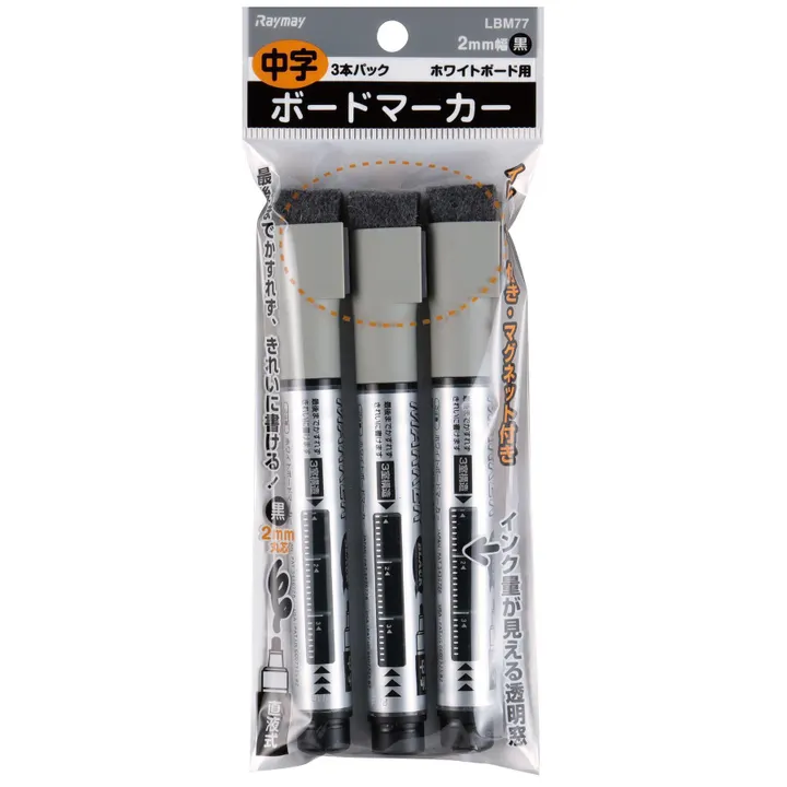 【透明窓でインクの残量がわかりやすい】 直液式 ボードマーカー ブラック 中字 3本セット