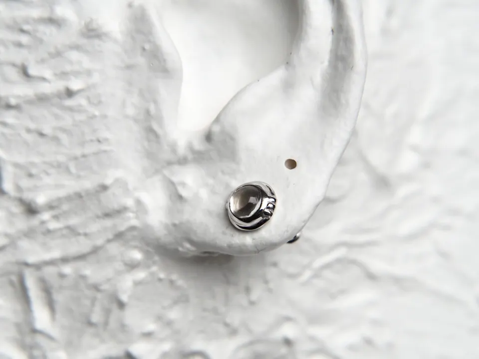 ・コンセプト 「心の内に秘めた光を引き出し、身に纏う人そのものを輝かせたい。」人は誰しも、心にきらりと輝く光を持っています。その光は、人それぞれに形が異なるからこそ美しく、素晴らしい。Rinnは、心に宿る光に寄り添うように、身につける人そのものを輝かせるジュエリーを提供しております。 「毎日身につけても壊れにくく、時を重ねるとともに肌に馴染んでいくようなジュエリーを」 Rinnは身につける人の肌と生活に馴染むジュエリーを提供しております。 ・デザイン 「他になく、永く愛されるデザインを。」 ジュエリーのデザインは、日常に溶け込んだささやかな美しさから生まれます。 例えば揺らめく布の柔らかさに触れた時や、朝陽が昇る瞬間に霞んでいたものが透き通って見えた時、感じ取った自然の美しさがジュエリーの形になっていきます。 そこへクラシカルな要素を取り入れることで、"Rinnにしかないデザイン"を意識いたしました。 お客様の生活に寄り添い続けるために、永く愛され続けるデザインにこだわりました。 そこには「親から子へと、時代を超えて受け継がれていって欲しい」という想いも込めております。どんな人にもどんな装いにも、しっくりと馴染み続けていくよう願いを込めてジュエリーを製作しております。 ・アイテム 天然石を中心置き、指輪の腕部分にまで精細な装飾を施した16世紀ごろのリングをモチーフにしたピアスです。 ホワイトトパーズとシルバーカラーがクールな印象です。