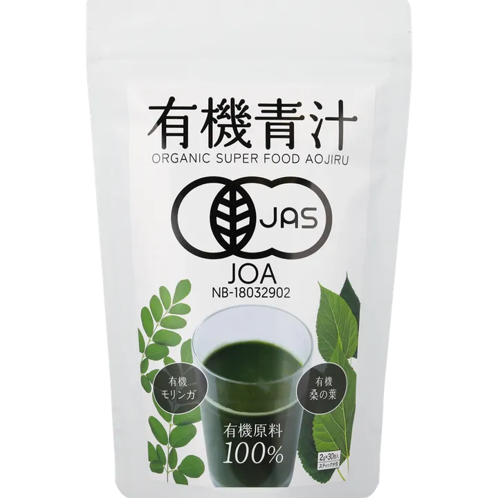 オーガニックスーパーフード青汁。 有機JAS認証を取得した有機モリンガと有機桑のは、有機アガベイヌリンをバランスよく整え、溶けやすく飲みやすいスーパーフード青汁です。青汁特有の苦みがないため、青汁が苦手な方やお子様も毎日お飲みいただけます。 植物の王様「モリンガ」を手軽に摂れます。砂糖やデキストリンなどは一切使用しておりません。 私たちの取り組みは、日本の有機生産者の応援をしています。当商品に使われている有機農産物の原料は、株式会社ZIRAJAPANが様々なご縁で繋がり有機生産者が手塩にかけて育てた有機農産物を使用しています。 商品が広がることで、有機生産者の応援や食品ロス低減にも繋がります。 (お召し上がり方) 1日1~2包を目安に、180ml程度のお水やお湯でグリーンティーの様な味わいで。また有機オーツミルクや有機豆乳、有機プロテインに混ぜても美味しくお召し上がりいただけます。