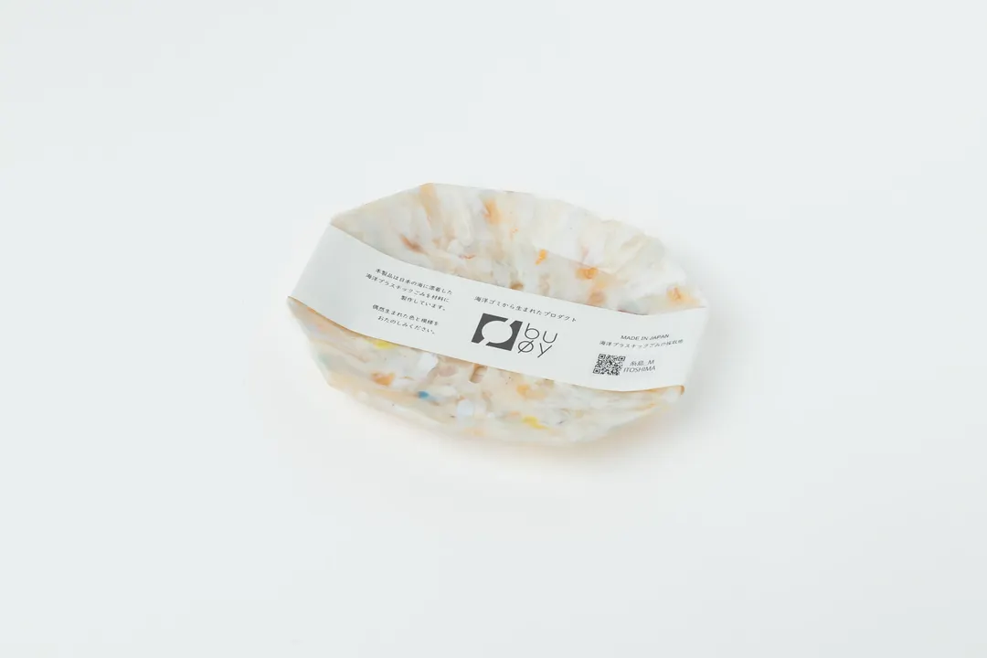 海洋プラスチックごみのアップサイクルブランド「buøy(ブイ)」では、偶然漂着したプラスチックごみを材料に唯一無二の模様と色が魅力の製品を多数展開してます。
