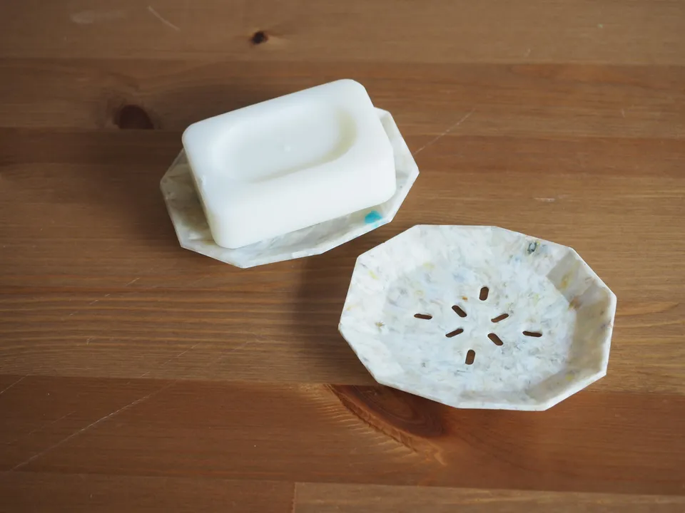 マーブル模様が特徴の海洋プラスチックごみを材料につくったプラスチック製のソープディッシュです。 ブランドbuoy(ブイ)は株式会社テクノラボというプラスチックメーカーが海岸に流れ着いてきた海洋プラスチックごみを材料として活用できるよう技術開発して生まれたブランドです。材料となる海洋プラスチックごみは日本各地のビーチクリーン団体様から買い取っており、製品には漂着地域が記載されています。 製品の色や模様は偶然集まったゴミに由来する為、製品ごとに色や模様が必ず異なります。 偶然うまれた世界に一つの模様をお楽しみください。 <仕様> サイズ 114.5×94.7×14.7mm <特徴> ☆製品のほぼ100%海洋プラスチックごみでできています。(製品をコーティングしているフィルムのみ海洋ごみでなはい) ☆製品に添付されている回収地域QRコードを読み込むと、その製品に使われた材料回収地域のページに飛び、回収者情報などを見ることができます。 同時発売の歯ブラシスタンドも同じ十角形で構成されており統一感があります。
