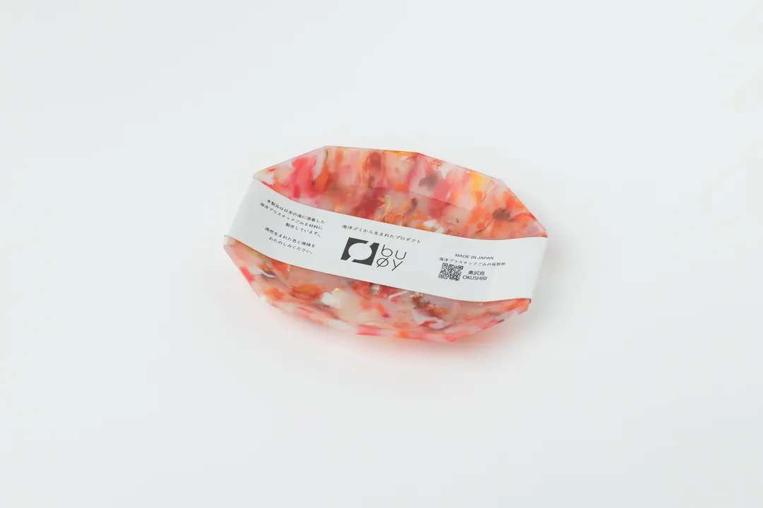 海洋プラスチックごみのアップサイクルブランド「buøy(ブイ)」では、偶然漂着したプラスチックごみを材料に唯一無二の模様と色が魅力の製品を多数展開してます。