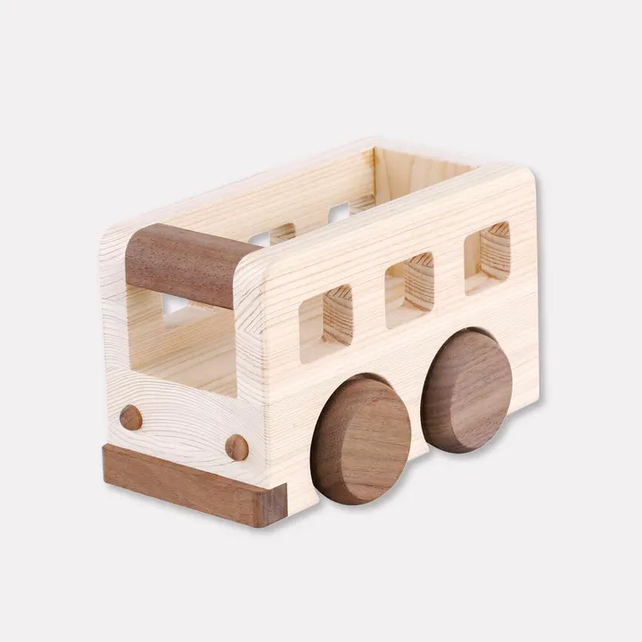 たっぷり荷台にお気に入りのおもちゃなどを積み込めるオルゴールバス。 車体を前後どちらに動かしても、「となりのトトロ」が流れます。 ウォルナットとひのきのコントラストがかわいいと人気です。 ハイハイをはじめた赤ちゃんの体力づくりにおすすめです。 リモコンや鍵を入れて、インテリアグッズとしても使えます。 セット内容:本体/1個(♪となりのトトロ) 対象年齢:10ヶ月~ ※CEマーク取得商品 ※ST規格に準拠
