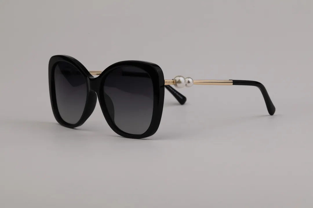 送料無料ダブルパール スクエア シェイプ サングラス (2color) ** SinSin* ダブルパール スクエア シェイプ (ブラック)