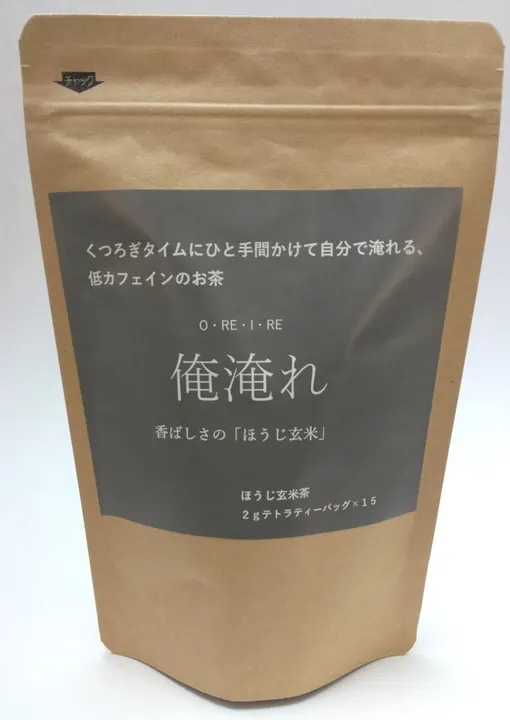 香ばしさの 「ほうじ玄米」 内容量 :2g×15袋(テトラ型ティーバッグ) 原材料 :緑茶(国内産)、炒り米(国内製造) くつろぎタイムにひと手間かけて自分で淹れる、低カフェインのお茶 俺淹れ(オレイレ) 近年のアウトドアブーム、一人キャンプを楽しむ方も増えました。焚火で沸かしたお湯で、コーヒーもいいですが、香ばしい香りのノンカフェイン(もしくは低カフェイン)茶で、くつろぎタイムを充実のひとときにされてはいかがでしょうか? 熟練の茶師により丹念に火入れされた茶葉は、香ばしいほうじ茶に生まれ変わります。同じく砂浴式で焙煎された炒り米は、香ばしく深みのある味わいとなります。この2つを試行錯誤を重ねて絶妙なバランスにブレンドしました。僅かなタイムラグをもって2つの香ばしさと味わいがハーモニーする感覚を是非お楽しみください。 アウトドアはもちろん、オフィスやご自宅でもくつろぎタイムのお供としてください。 ※お好みにより水量・浸出時間を調整してください。 ※熱湯をお取り扱いの場合は十分に注意してください。 〇お茶は鮮度が大切です。開封後は出来るだけお早めにご使用ください。 〇本品は「そば、大豆、ごま」を加工している工場で製造しています。