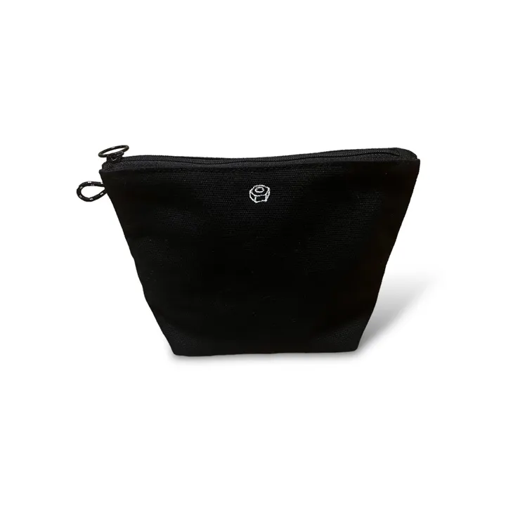 手触りの良いコットンキャンバス生地でできた、使い勝手の良いサイズの至ってシンプルな舟型ポーチです。 BAG in BAG として小物類の収納にも最適です。 別名『乙女ポーチ』♡ ww ナットの刺繍がアクセントになってます。
