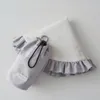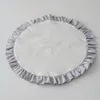 【巾着ポーチ付】バイカラーフリルカフェマット アイボリー×グレー(ポリエステルナイロン)