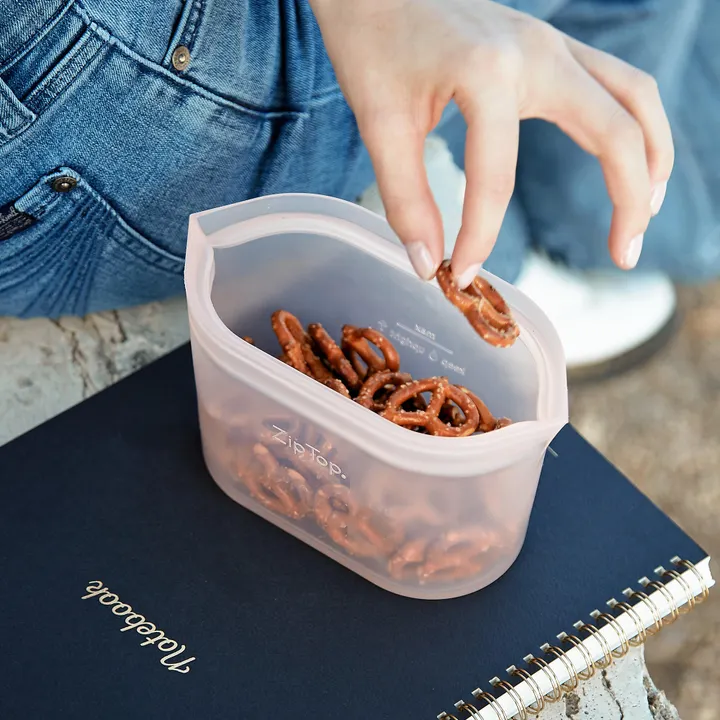 食品を入れるのに最適な形状にデザインされており、マチが広めの設計はランチを入れて持ち運んだり食品を保存するのに最適です。BPA、鉛、フタル酸エステル、PVCを使用しておらず、アレルギーを引き起こしにくく安全性の高い素材が使用されています。