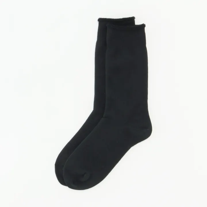 実は、HOiSUMが大切にしていること。 それは、履いた瞬間に感じる心地よさ。 そして、一日中履いて、脱いだ後に何も感じない—— そんなノンストレスな状態。 この感覚は、私たちが求めるものの根幹にある“構造”の表現です。 素材によって特性はさまざま。 デザインひとつで履き心地もまったく変わる。 その絶妙なバランスの中で、心地よさをかたちにしていくこと。 細胞は、何度分裂しても大切な情報を守り続ける仕組みをもっている。 その仕組みを担うのが“テロメア”。 私たちが活動を続けていく中で、 ブレずに大切にしておきたい想いを詰め込んだ靴下です。 細胞の構造から着想を得た、 ちょっと大げさなほどの履き心地を、ぜひお試しください。 肌に触れる内側には、ファインウールとメリノウールを混紡した薄手のパイル。 外側には、ドライタッチのハイカウントコットンを使用。 やわらかく、軽く、それでいて芯のある一足となっています。