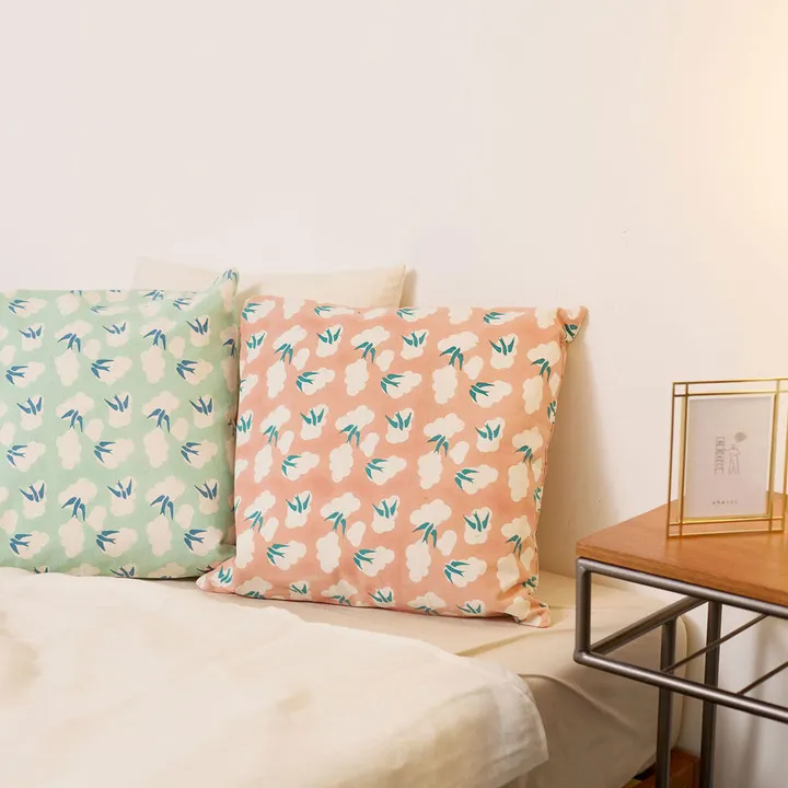 インドの伝統工芸であるブロックプリントで空を舞うツバメと雲を表現したクッションカバーです。 春にやってきて秋に飛び立つツバメは春の季語にも使われている春の象徴的な鳥です。 春らしい色合いとブロックプリントならではの風合いが魅力的なこの春一押しのアイテムです。 お部屋の模様替えをしたいけどなかなか大がかりな事は難しい。 そんな時にお勧めしたいのが簡単にお部屋の雰囲気を変えられるクッションカバーです。
