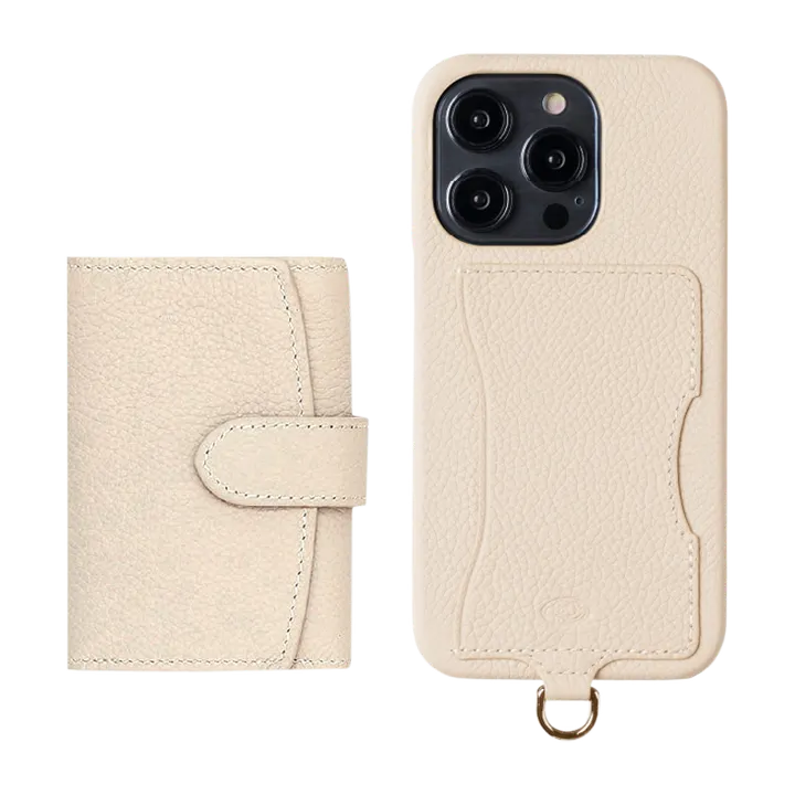 素材は、デミウルーボ の代名詞でもあるフランス産カウレザー。 ベルトを開けると札入れがあり、横向きのカード入れが3箇所ついています。 お札は事前に折る必要はなく、そのまま収納できる設計になっています。カスタムハードケースに装着できるようになっており、 シーンに合わせてスマホと財布をセットで持ち歩くことができます。 装着した状態でもそのままベルトが開けられるようになっているので、取り外すことなく使用可能です。 ストラップをつけてぶら下げても、カード入れが横向きについているので落ちないように設計されています。 単体としてももちろん、カスタムハードケースとセットでぜひご利用ください。 シンプルなデザインなので男女、年齢関係なくお使いいただけます。プレゼントにも最適です。 <カスタムハードケース> フランス産レザーを使った高級感あふれるレザーハードケース。 カード類を横から入れることができ、 ストラップでぶら下げても落ちないようにサイズ設計されています。 通常のクレジットカードなどは1枚、薄いカードは2枚入れることが可能です。ROND(ロンド)とTROIS(トロワ)をこのカスタムハードケースに装着することが可能となっており単体でも、セットでも様々な使い方ができる万能ケースです。 ※MagSafeはご利用になれません。※ストラップは別売りです。 ー仕様ー・素材本体:牛革金具:ニッケル・
