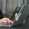 作業効率が大幅にUP!パソコンもスマホも同時に使いたい方に パソコン作業をしながらスマホのメッセージも確認したい場合、今までは机の上にあるスマホに視線移動をする必要があり不便でした。 NINJAブラケットで、普段使っているPCを便利なスマホホルダーに変身! PC画面とスマホ画面を横並びにできるのでとっても便利です! MacBookにパーフェクトマッチ NINJAブラケットはMacBookのようにアルミ素材を使用。シルバー色のため本体のデザインと馴染みます。 見た目だけではなく、とても頑丈なため安心してお使いいただけます。 MacBookにパーフェクトマッチ NINJAブラケットは必要な強度をもたせながら徹底的にスリム化。パソコンに取り付けても持ち運びが苦になりません。 本体は高精度に加工されています。 仕事に・趣味に。作業パフォーマンスをアップ NINJAブラケットならテレビ会議などのリモートワークやノマドワークなどあらゆるシーンで活躍します! 使い方 1. ブラケット側の粘着テープでパソコン本体に取り付けます。 2. 付属の金属プレートをスマホ本体かスマホケースに取り付けます。 3. ホルダー先端の磁石とスマホに取り付けた金属プレート間の磁力によって半固定できます。