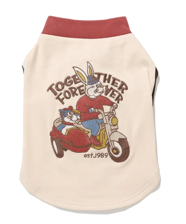 《KRIFF MAYER 秋冬アイテム「DOGもちのびT(ラビット)」》 大人気もちのびシリーズ!ぜひ触って実感してほしい! 「もちっ」と驚く程のストレッチ性のある気持ちの良い着心地が病みつきになること間違いなし! 伸縮性と弾力がしっかりありワンちゃんの動きにぴったりフィットするので、外ではもちろん家の中でも快適に着用でき 抜け毛対策に服を着せたいけどストレスそう…なんて子にも、リラックスしてもらえるはず! 昨年大好評だったバイク柄刺繍をリニューアルし、クリフラビットがサイドカーにわんちゃんを乗せてお出掛けしている様子がグラフィックになっています。 今年もソリッドタイプと袖配色タイプをご用意しているので愛犬にあったカラーをお選びいただけます。 またご要望に多かった女の子らしいカラーも展開しているので多色買いがおすすめ! 売り切れる前に手に入れてくださいね! 着脱させやすい、肌触りも良い、そして暖かい!三拍子揃うのが魅力!ぜひお試しください。 他にないドッグウェアで他のわんちゃんと差別化しちゃおう! ※ハーネス穴はございません。 ※アイテムによってサイズ感が異なる為、数値をよくお確かめください。 ※従来のXLサイズがXXLサイズ表記になり新しいXLサイズにリニューアルしています。
