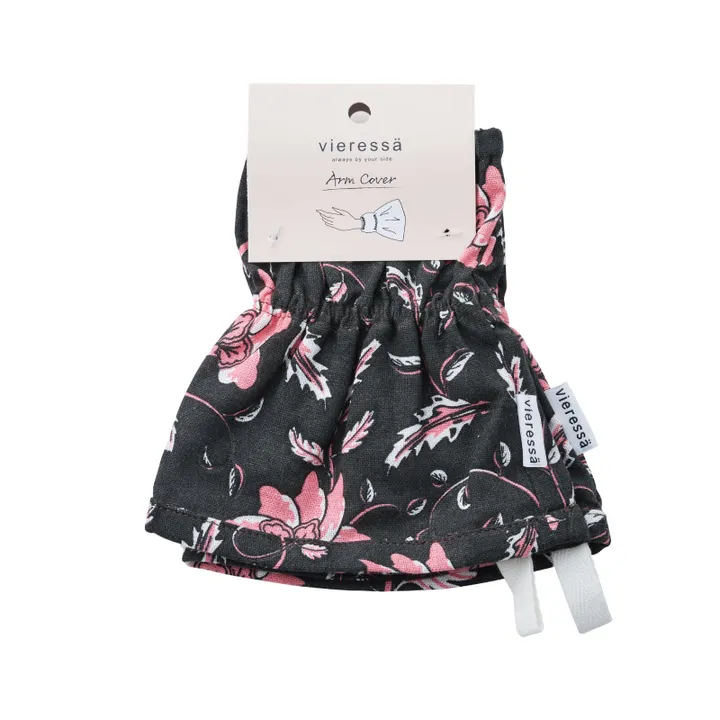 エスニック調の花柄ショート丈のアームカバーです。 ●ブランドコンセプト 【vieressä-ヴィエレッサ-】 vieressäとはフィンランド語で「~の隣に」という意味。 つねにそばにあるもの、毎日使うもの、そんな日常の暮らしに欲しい北欧テイストのマストアイテムです。 ●POINT 【ショート丈のアームカバー】 水廻りのお仕事はもちろん、ガーデニングや事務作業の際に便利なアームカバーです。 ショート丈なので手軽につけやすく、裾をもって引き上げれば、サッとそでをまくる事が出来ます。 【ループ付き】 裾にループを取りつけているので、使っていないときはフックなどに吊り下げることが出来ます。 また、使用後に吊るして乾かすことも出来ます。