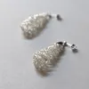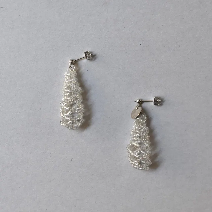 “繭” 活動が停止または鈍い活動状態にある動物を包んで 保護する覆い また蚕(カイコ)の覆いは絹糸となる 自身を覆うものは自身によって産み出される 外界を遮断し 内側を静かに育てるかたちは 変わろうとする気配に寄り添うものです 美しい覆いを装いながら --- 光をふくんだ 金属のような 小さなガラスの粒 透明感と 静かなきらめきが 装いにそっと寄り添います シンプルなコーディネートにも自然に馴染む 空気を含んだ やわらかなかたち --- material SILVER925(ピアス金具)、SILVER925 ロジュームメッキ(イヤリング金具)、ガラスビーズ、真鍮、ステンレス、テグス size 約45x13mm weight 約1.7-2.7g *取り付ける金具によって、重さが異なります *CACICOの商品は全て1点1点制作しているため、個体差があり、商品写真と差がある場合がございます。ご了承の上、ご購入ください。 *金属アレルギーの方はご使用をお控えください