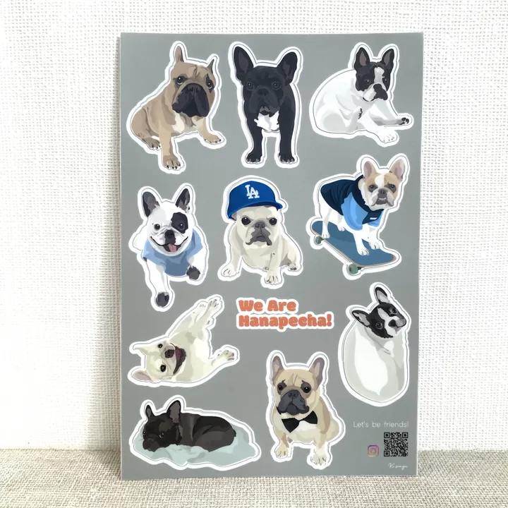フレンチブルドッグ好きが作るフレンチブルドッグ好きのためステッカー。 10種類の個性豊かなシールです。 耐水素材なのでアウトドア用品などにも貼ることができます。