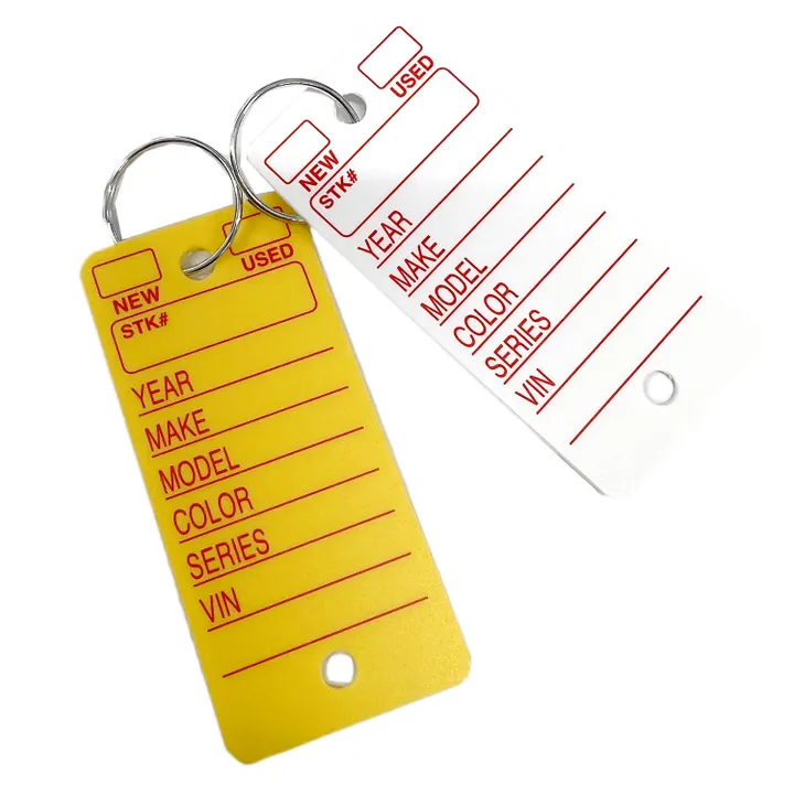 映画などで目にした事のある、USカーディーラータグのご紹介です。アメリカ現地で実際に使われているUSA製カーディーラータグ2枚セットです。水などにも強いプラスチック製のプレート、油性ペンで書き込みも可能。車以外にも自転車や家のカギ、バッグなどキーホルダー感覚で仕えるちょっと面白いアメリカングッズ。車の年式やモデル、新車中古車などの車両の管理に便利なアイテムです。車やオートバイはもちろん、ラジコン、ミニカー、ミニ四駆などの展示アイテムにもオススメ。展示物の雰囲気を損なわず、さり気なくオシャレに演出します。お子様の持ち物管理にもいかがでしょうか?シンプルなデザインなのでアイデア次第で色々な楽しみ方ができます。