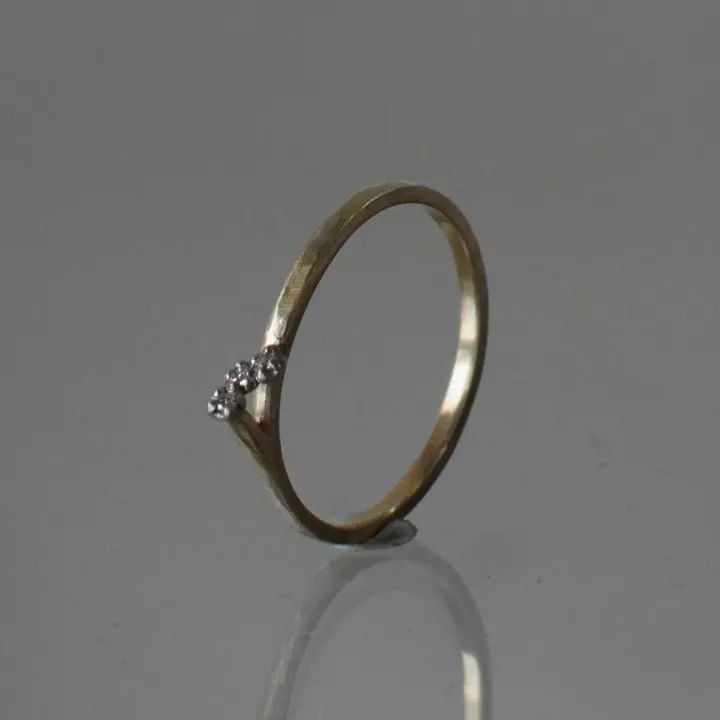 指の隣にダイヤ留まるようにデザインしました。 指の間にダイヤがあっても指の外にダイヤがあってもかわいらしいピンキーリングです。