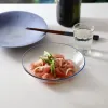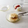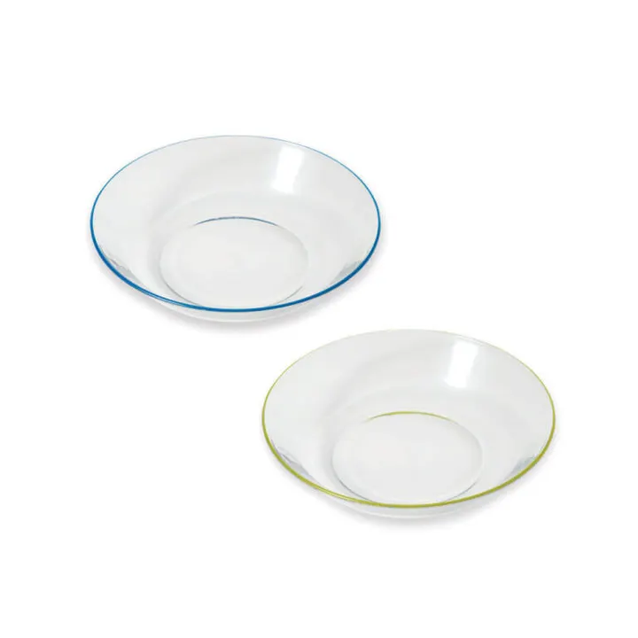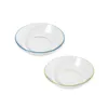 17cmプレートは、少し深さがあることで、お料理の盛り付けやフルーツボウルとしての使い勝手が抜群です。 取り分け用のお皿として安心感のある少し大きめのサイズに仕上げました。幅広い用途で活躍してくれる頼れる一枚です。 毎日使いやすいペアプレートは、新生活や内祝いなどに贈るおすすめのセットです。 bitte(ビッテ) スウェーデン語で『朝早く』を意味するbitte(ビッテ)は、初夏の朝をイメージしたビビットなイエローと爽やかなブルーのラインが特徴です。 フランスのガラスメーカーDURAREX(デュラレックス)社のプレートやボウルに、ポトペリーの東京工房で1点1点手作業で線をひいたオリジナルシリーズです。 ボウルや異なるサイズのプレートと幅広いラインナップで、食卓に料理に清涼感を運んでくれるガラスの器です。