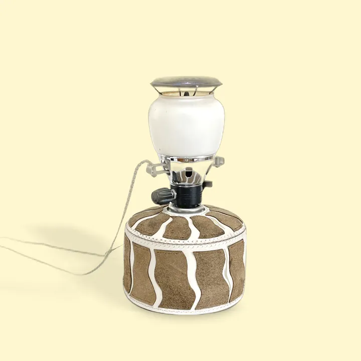 アンモナイトの化石をイメージしてお作りしたOD缶カバー。 本革です。 模様は一つずつ縫い付けております。 OD缶をランタンに取り付けて使用される際に オススメのカバーです。 火をお使いになる場合も使用可能です。 【素材】 本革 【color】 ブラウン×オフホワイト 【size】 直径11.3㎝/高さ約7.8㎝ 230缶〜250缶に対応 *ご使用されるOD缶によっては多少の余裕がある場合もございます。 手作業による作品のため、1点物です。