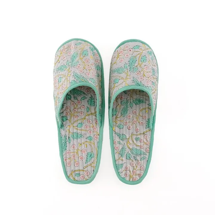 ブロックプリント ポーチュラカの携帯スリッパ(2色) GN(グリーン)