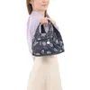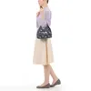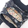 デニム地に花模様をプリントしたバッグ.花柄プリントのラメがきらきらと華やかな印象に!※素材の特性上、ラメが落ちやすくお洋服などに付着する場合がございます。予めご了承ください。開口タイプ/ファスナー式■ポケット/(内側)ファスナー×1、オープン×2(外側)後ファスナー×1