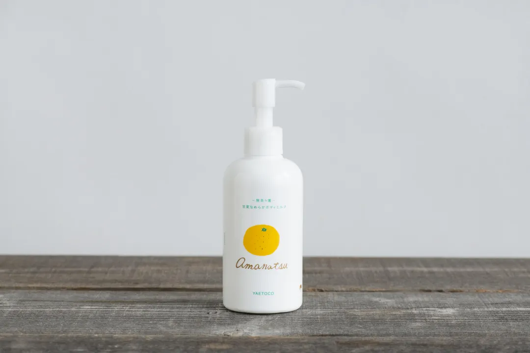 【柑橘の香りとやさしさを、肌いっぱいに】 無茶々園の生産者が育てた甘夏の果皮から、水蒸気蒸留法によって抽出した精油(※1)とその副産物である蒸留水(※2)を使用した、自然の香りを感じられる全身用の乳液です。香りづけに使用している精油(ナツミカン果皮油)は、果汁を搾った後に残る果皮を蒸留して抽出したもの。「畑でできたものを余すことなく」をコンセプトにしたアップサイクルアイテムです。保湿成分として愛媛県産のみかん蜂蜜も配合しています。 ※1 ナツミカン果皮油(香料) ※2 ナツミカン果皮水(保湿成分) ※3 ハチミツ(保湿成分) こだわったのは肌に乗せたときのびの良さ。ベタつくことなくなめらかに馴染んでくれます。基材には、精油抽出の際に副産物でできる蒸留水(ナツミカン果皮水)をたっぷり使用。甘夏らしいさわやかな甘酸っぱい香りを十分にお楽しみいただけます。 【こうやって使おう】 首、うで、おなか、腰、胸、脇、足まわり。使用する部位ごとにお好みで1~2プッシュ。手のひらに取り出し、両手を重ねて温めてから塗布していきましょう。特に乾燥が気になる部分にはたっぷりお使いください。ハンドクリーム代わりに使われる方もいらっしゃいますよ。 ボディミルクの活躍は乾燥シーズンだけにとどまりません。実は、夏のお肌もけっこう乾燥しがち。日差しを浴びたあとや汗をかいたあとは、肌のうるおいが奪われやすくなっています。そんなときこそ、ボディミルクでやさしく保湿ケア。お風呂上がりや外出後、肌がほてったときなどに塗るのがおすすめです。乾燥する季節だけでなく、夏にも心地よく使えるアイテムです。 【香りと原料へのこだわり】 柑橘の香りを生かすこと。それは柑橘の産地である無茶々園が、長年大切にしてきた想いです。 「甘夏なめらかボディミルク」には、甘夏の果皮から抽出した精油と蒸留水を使用し、果実のさわやかな香りをそのまま活かしています。石油由来の成分や合成香料、合成着色料は使用せず、天然由来成分のみで仕上げています。 【こんな方におすすめ】 ・自然な柑橘の香りで、毎日のボディケアを心地よい時間にしたい方 ・肌にすっとなじんで、ベタつかない使用感を求める方 ・夏場も快適に使えるボディミルクを探している方 ・天然由来の成分や国産素材にこだわりたい方 ・全身の保湿をシンプルなステップで済ませたい方 【使用方法】 1~2プッシュを手のひらに取り、首元や腕・足などに伸ばしてよくなじませてください。特に乾燥が気になるひじ・ひざ・かかとなど全身にたっぷりお使いください。
