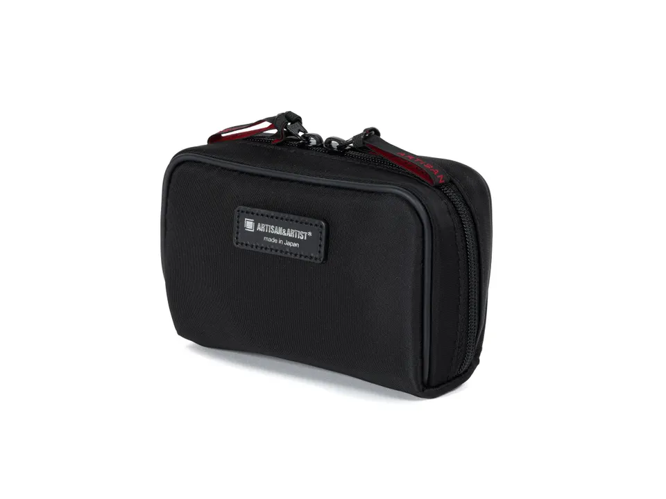 ブランドカラーの黒と赤を基調としたシンプルでベーシックなシリーズ。 深みのある黒と鮮やかな赤のコントラストにより、シックな魅力をもたらすと同時に、個性とエレガンスを際立たせています。 シンプルなシリーズだからこそ、素材、品質、丁寧な縫製に徹底的にこだわった、使い込むほどに愛着が湧く逸品です。洗練された外観と機能性は、日常のあらゆるシーンで活躍し、あなたのスタイルを際立たせることでしょう。 手の平にすっぽり収まる小さなサイズですが、ボックス型で笹マチも付いており、予想以上の収納力を発揮します。両サイドにはそれぞれ大きなの異なるスタンド式ホルダーが付いています。正面側に全面サイズ、背面側は2分割サイズになっており、より細かな分け入れができます。また、メイク道具に限らず、カード類にパスカード、家のカギや車のキーなど、迷子になりがちな日用品を、きちんと整理してくれます。