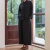 KNSP347-BEIGE 裾ギャザーリネン綿ワイドパンツセットアップ商品 BLACK/FREE