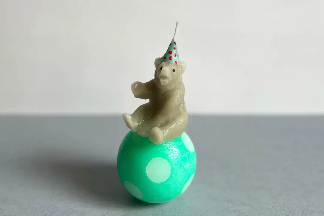 「小さなサーカス団、カラフルにショータイム!」 小さな舞台で、くまのサーカスがはじまります! ころんと愛らしい、見ているだけで笑顔になれるキャンドルです。 まるでサーカスの舞台を切り取ったような、遊び心いっぱいのキャンドル。 パーティーハットをかぶったくまさんが、カラフルなボールにちょこんと座っています。 火を灯さずインテリアとして飾っても、灯してやわらかな光を楽しんでも◎。 お誕生日やギフトにもぴったりの、心をくすぐるアイテムです。 ▶︎お好みの色の組み合わせを選べます 〈エメラルドボール(グリーン×ホワイト)〉  爽やかで涼しげな印象。 〈キャンディーボール(レッド×ホワイト)〉  元気いっぱい、王道サーカスの雰囲気。 〈サニーボール(イエロー×パープル)〉  太陽のように明るく、ハッピーな印象。 ———————— size:ボールの直径約80×高さ約180m material:パラフィンワックス、マイクロワックス、ミツロウ、綿芯 燃焼時間:約20H(気温・空調・環境により異なる) ———————— Made in Japan ・・・・・・・・・・・・・・・・・・・・・・・・・・ 『ひいらぎキャンドルの〈designed〉』 「デザイン」に焦点を当てた、 初心者さんにもおすすめの遊び心のあるキャンドル カラフルな色使いのキャンドル 徹底的にシンプルにこだわったキャンドル ひいらぎキャンドルの『designed』シリーズは、 「デザイン」にこだわったキャンドルです 色遊びをしたり、モチーフ遊びをしてみたり 個性的なフォルムのキャンドルが出来上がり! もちろん、灯りの美しさも計算した作りで インテリアとしてだけでなく、是非そのヒカリを楽しんでください ・・・・・・・・・・・・・・・・・・・・・・・・・・ ひいらぎキャンドルでは、 キャンドルは一点一点全て手作業で作成しています。 キャンドル本体の製作だけでなく、ラベルやパッケージのデザイン、シールの貼り付け、 梱包など、キャンドルが生まれるところから旅立つまでの間の全ての制作作業を 自身で行なっております。 http://hiiragicandle.littlestar.jp 【ご注意点】 <こちらの商品は受注生産になります> ・香りの良い新鮮なものをお届けする為、注文を頂いてからお作りしています ・1つ1つ丁寧に作成しておりますがハンドメイドの為に画像と同じ作品は作れません 手作業のため大きさに多少の誤差・お色味や形状が若干異なる場合がございます ・お客様よりご注文を頂いてから、すぐに製作に入らせて頂きます 途中でのデザインや素材など一切の変更、製作のキャンセルはお受けすることが出来ません ・注文日より1週間以内に発送しておりますが、 お急ぎの方・ご希望納期のある方は必ず事前にお知らせ下さい。 配送地域、交通事情、素材の在庫等の理由により遅延する場合がございます お届けまでに2週間ほどかかる場合もございます どうぞ余裕を持ってご購入くださいませ ○火を取り扱う製品となります。 「attention」という注意事項を同封致しますので、 必ずお読みいただきご使用下さいますよう宜しくお願いいたします。