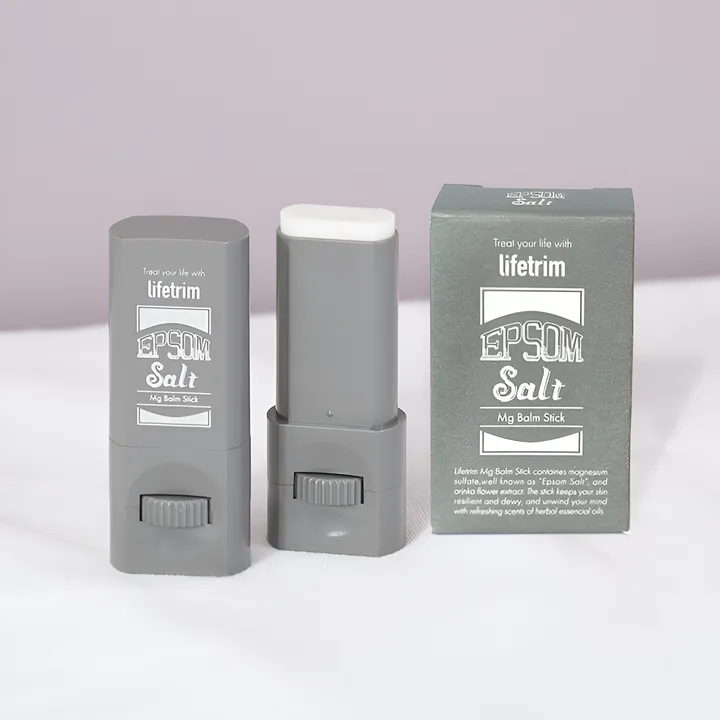 持ち運びできるエプソムソルト「Mgバームスティック」 高純度のエプソムソルトに、保湿やトラブルシューテングのハーブであるアルニカを配合。 30種の天然アロマやメントールで心地よい爽やかな快感が楽しめます。 首肩、こめかみや足など気になるところに塗るだけでスッキリ。いつでもどこでも使えるエプソムソルト入りバームスティック。
