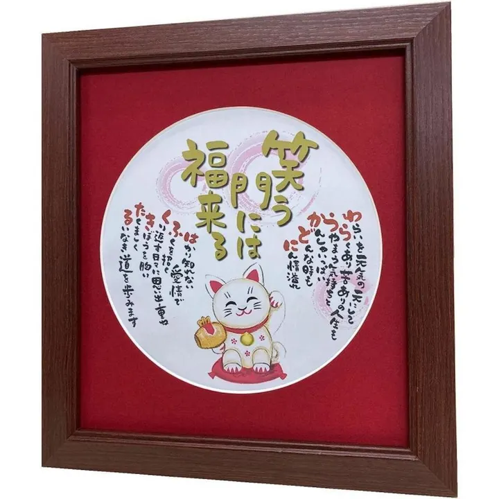 笑う門には福来る 招き猫 ポエム 詩 お祝い ギフト 贈り物 プレゼント【詩絵(うたえ)】 エンジ丸マット