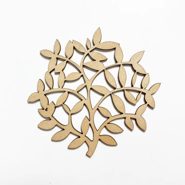 リトアニアで製作しているコースターです。 焼け跡の残らない技法を使用し、レーザーで切り抜いたデザインです。