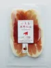 こちらの商品は、生ハムスライスパック30g入りです。 薄くスライスした生ハムを並べ、一段毎に透明シートを挟んでありますので、剥がしやすくなっています。 オリーブ夢豚は香川県の銘柄豚です。 バークシャー(黒豚)と白豚を掛け合わせた、バークシャー50%の三元豚です。 香川県の名産であるオリーブ果実の絞り粕を与え、甘味に富んだ肉に仕上がっています。 バークシャーの血を引き継いでいる為、サシがやや多く、脂肪も美味しい肉です。 当工房の生ハムは、醤油麹菌と白カビの2段階発酵で作られ、その味はうま味が強く、甘いという表現をされています。 それは、当工房の標準品であるオリーブ夢豚の生ハムを食べた方々の評価です。 うま味や脂肪のバランスが良く、特に脂肪はチーズの様な風味を持っています。