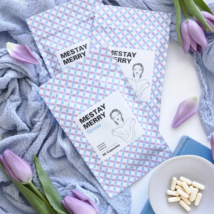 MeStay Merry Grow ― マルチ腸内フローラサプリメント ― 腸内環境を改善するには、「腸内細菌を善玉菌優位にすること」と「腸の蠕動運動を活発にして便秘を改善すること」が重要です。ところが、腸内環境は人それぞれ千差万別。生きた善玉菌が効く人もいれば、善玉菌のエサを増やすことで効果を実感する人もいます。そこで「MeStay Merry Grow」は、多角的なアプローチを“最高の成分”でまとめて摂取できるように開発。できるだけ多くの方が腸内環境改善を実感できるよう、こだわり抜いたサプリメントです。 【特徴1:3つのマルチアプローチ】 「MeStay Merry Grow」では、以下の3つのアプローチを採用し、あらゆる腸内環境の悩みに対応します。 プロバイオティクス(生きた善玉菌を体内に届ける) プレバイオティクス(善玉菌のエサを補給する) バイオジェニックス(善玉菌が生成する有用物質を直接届ける) このトリプルアプローチが、より多くの方の腸内環境改善をサポートします。 【特徴2:厳選した最高の成分をマルチ配合】 原料や製法にもこだわり、特許製法である“ナノ化”を施した乳酸菌や、消化液に強い菌などを厳選配合。 ・ヒト由来生菌(エンテロコッカス・フェシウム) ・ビフィズス菌(BB536 生菌) ・有胞子性乳酸菌(生菌) ・植物性ナノ型乳酸菌(死菌) ・ヒト由来ナノ型乳酸菌(死菌) ・イソマルトオリゴ糖 ・乳酸菌生産物質 【特徴3:腸内フローラに関連するビタミンB群をマルチ配合】 ビタミンB群には、B1、B2、B6、B12、ナイアシン、パントテン酸、葉酸、ビオチンの8種類があります。これらはエネルギー生成や代謝をサポートし、腸の蠕動運動やミトコンドリア活性化にも寄与します。 「MeStay Merry Grow」は、これら3つのマルチアプローチと厳選素材によって開発された“究極の腸内改善サプリメント”です。 ――――――――――――――――――― ■プロバイオティクス エンテロコッカス・フェシウム菌(ヒト由来生菌) ・特徴1:胃酸に負けない 消化液や物理的ストレスにも強く、腸までしっかり届くため、腸内菌バランスを整えるのに有用。 ・特徴2:安全性が高い 水牛のモッツァレラチーズやカマンベールチーズなどにも利用されている、安全性の高い乳酸菌。 ・特徴3:増殖が速い 他の乳酸菌より増殖スピードが速いことが確認されており、善玉菌優位の腸内環境を早く育てることが期待できる。 有胞子性乳酸菌(生菌) ・特徴:熱や酸に強い 胞子の殻で菌体を保護しているため、胃酸や熱でも死滅しにくく、生きたまま腸に届くことで善玉菌をサポート。 ビフィズス菌(BB536生菌) ・特徴:痩せ菌を作りやすい 酸素に弱いビフィズス菌だが、この菌は特別な膜を作り、胃酸や酸素に負けず大腸まで届く。短鎖脂肪酸を生成して腸の蠕動運動を活性化し、脂肪燃焼・食欲抑制・代謝向上などの効果が期待される。 ――――――――――――――――――― ■プレバイオティクス 植物性ナノ型乳酸菌(死菌) ・特徴1:特許製法によるナノ化で体内に吸収されやすい 粒子径が1ミクロン未満という超微粒子で、水に溶かした際に一つひとつがバラバラになるよう加工されている。免疫力を高める作用が期待されている。 ・特徴2:伝統的な健康食品由来 長野県木曽地方の伝統食“すんき漬け”由来の菌。東京農業大学と信州大学の研究では、アレルギー症状の軽減や胃潰瘍・感染症の予防など多くの機能性が示唆されている。 ヒト由来ナノ型乳酸菌(死菌) ・特徴1:特許製法によるナノ化で体内に吸収されやすい 植物性ナノ型乳酸菌(死菌)と同様に超微粒子化されているため吸収効率が高い。 ・特徴2:NK細胞(ナチュラルキラー細胞)の活性化 ナノ型乳酸菌をマウスの脾臓に添加すると用量依存的にNK細胞が活性化することが確認されている(メーカー試験)。 ・特徴3:便秘改善・整腸効果 腸内細菌のバランスを変化させ、免疫機能や腸内環境の改善(腸内腐敗抑制)を促し、便秘の解消にも期待できる。 イソマルトオリゴ糖 ・特徴:ビフィズス菌を選択的に増やす 腸内有用菌を増殖させ、便性などを改善し、腸内環境を健全に保つ働きがある。 ――――――――――――――――――― ■バイオジェニックス 東京大学名誉教授・光岡知足博士が提唱した概念で、腸内細菌叢を介さずとも直接あるいは腸内細菌経由で免疫賦活、コレステロール低下、血圧低下、整腸、抗腫瘍、抗血栓、造血作用など多面的に健康をサポートする食品成分を指す。 乳酸菌生産物質 ・特徴:善玉菌が作る栄養素と有用成分を直接摂取 乳酸菌の代謝によって生成されるビタミン、ミネラル、アミノ酸などの有益成分をまとめて取り入れられる。腸内に十分な善玉菌がいなくても、体外で作られた乳酸菌生産物質を摂取することで、継続的にこれらの成分を補給できる。 ――――――――――――――――――― 多角的なアプローチと厳選素材で開発された「MeStay Merry Grow」。 あなたの腸内をしっかりケアし、健康で快適な毎日をサポートします。 ぜひ“究極の腸内