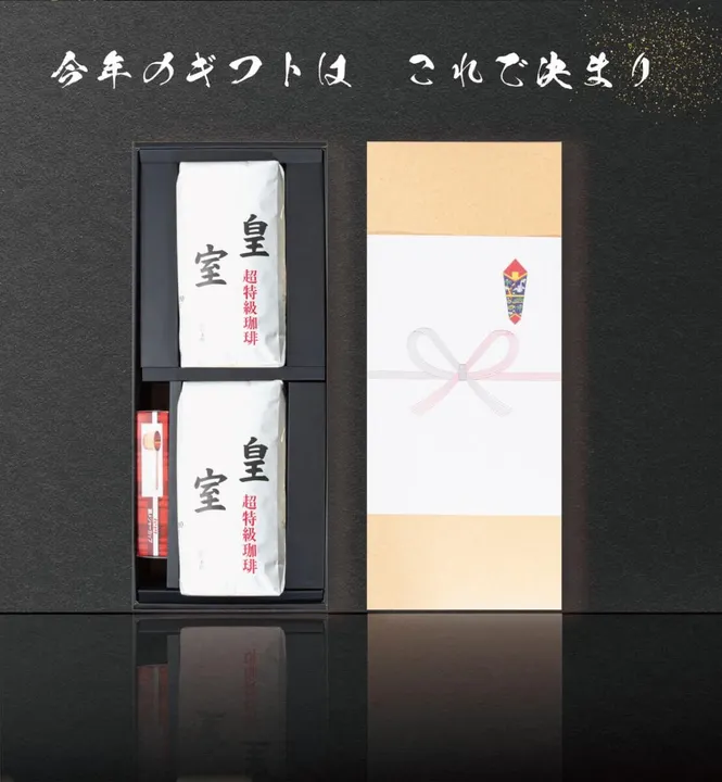 当店自慢の皇室珈琲を プレゼント用として、ギフトボックスに詰め込みました。 ■熨斗をご希望の方 熨斗ありをご希望の方は、備考欄にその旨(種類など)とお名前を記載してください。 ■手提げ袋をご希望の方 1商品につき1つ手提げ袋をお渡し可能です。必要な場合は備考欄に【手提げ袋必要】とご記載ください。 ■豆の種類をお選びください ※ご連絡がない場合は、一般的な 挽き【中挽き】でお届けさせて頂きます。 珈琲の種類:豆 珈琲の種類:挽き(中挽き:通常はこちら) 珈琲の種類:挽き(細挽き:エスプレッソ用) 珈琲の種類:挽き(粗挽き:抽出時間が長い場合)