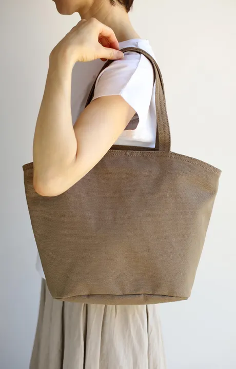 厚手のキャンバスで作ったフェミニンなトートバッグ「アークトートバッグ」をご紹介します。 開口部で弧を描くシンプルなシルエットと細身のハンドルでショルダーとしても、ハンドとしてもご使用いただけます。装いを雑貨っぽく、フェミニンに仕上げるバッグです。6色展開。