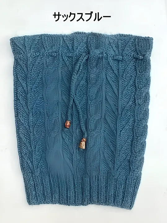 手編みベビーアルパカの2wayネックウォーマー&ニット帽 サックスブルー