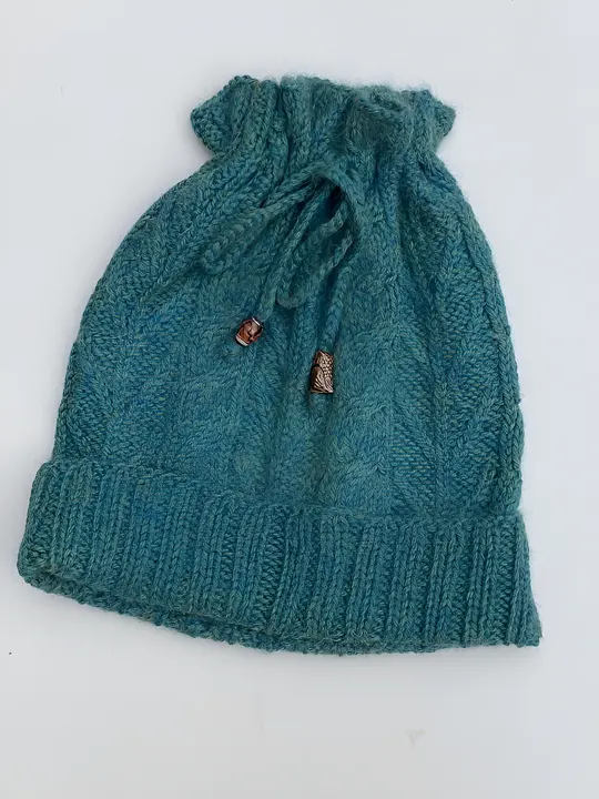 手編みベビーアルパカの2wayネックウォーマー&ニット帽 メランジターコイズ