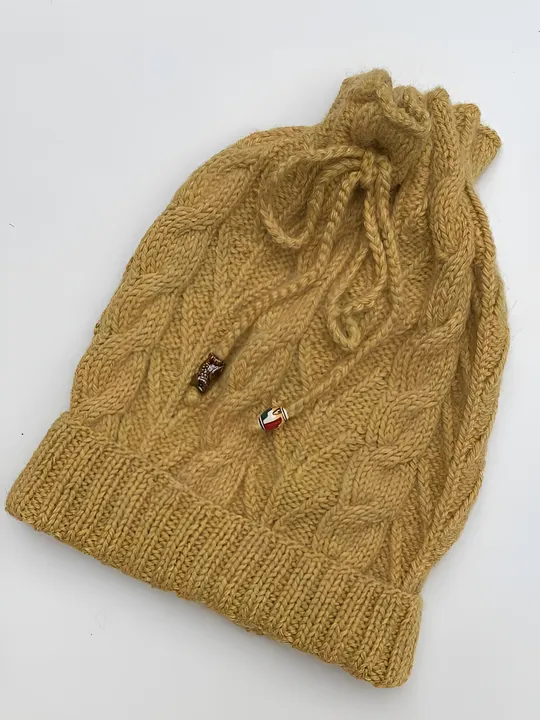 手編みベビーアルパカの2wayネックウォーマー&ニット帽 アラン:メランジマスタード