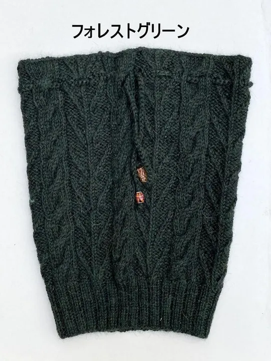 手編みベビーアルパカの2wayネックウォーマー&ニット帽 フォレストグリーン