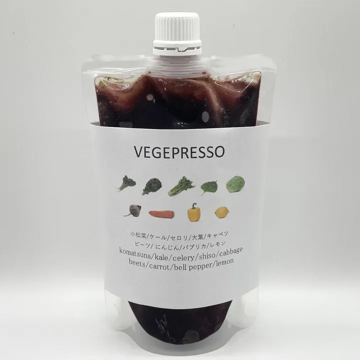 ☆「搾りたて」にこだわるBUBBLESのコールドプレスジュース。 これまで店頭販売のみでしたが、急速冷凍機を導入することで遠方のお客様にも提供できるようになりました。 鮮度を保った状態で冷凍でお届けします。 消費期限は冷凍保存で製造日より3ヶ月です。(ラベルに記載しております) 解凍してからよく振ってお召し上がりください。(当日中) VEGEPRESSO / ベジプレッソ (小松菜、ケール、ビーツ、セロリ、キャベツ、人参、パプリカ、レモン、大葉) ※苦手な素材は抜くことができます。備考欄にお知らせください。 ※野菜をふんだんに使用しており、お値段が他の商品より高くなっております。ご了承ください。 ※※ほぼ野菜のみでお作りしておりますので、苦味がかなり強めです。 【COLDPRESSED JUICE】新鮮な果物や野菜を使用し、低速絞り機で丁寧に絞ったジュースです。濃厚な味わいと栄養価をそのままに、冷凍技術を活用して長期保存が可能にしました。 身体をスッキリと癒し、疲れた心にも潤いを与えてくれます。 ヘルシー志向の方にもぴったり。化学調味料や保存料、合成甘味料は一切使用しておらず、原料は素材のみで作られています。自然の甘みと栄養が凝縮されているので、安心してお召し上がりいただけます。 ※冷凍品のため、お手元に届いてからすぐに冷凍庫で保管してください。解凍後はお早めにお召し上がりください。
